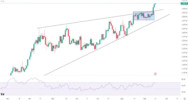 从历史走势来看,美联储降息周期通常都会利好金价,这一次似乎也没有例外,更不用说是单次50个基点的降息预期的刺激。